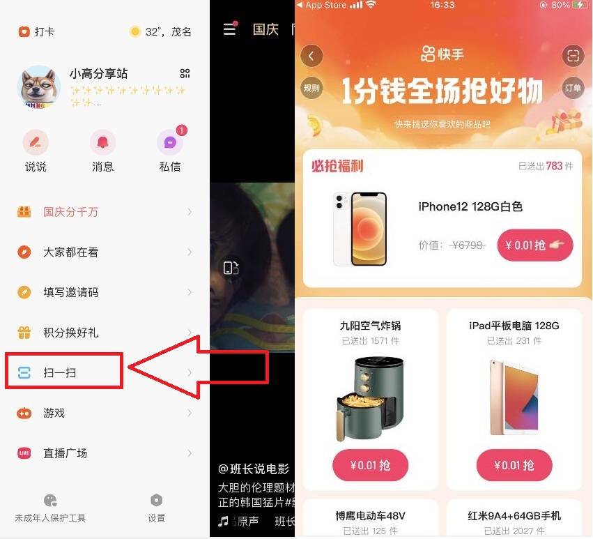 2、手机号登录,找到扫一扫,扫码底部二维码进入活动